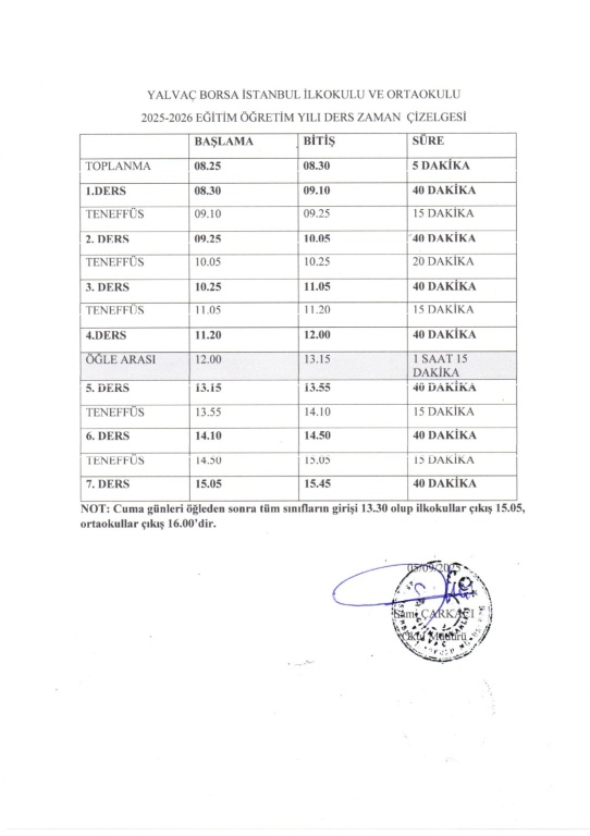 2025-2026 EĞİTİM-ÖĞRETİM YILI DERS ZAMAN ÇİZELGEMİZ